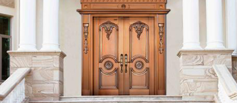 銅材具有質地溫潤,耐腐蝕,抗氧化,不變形等優(yōu)良特性。現(xiàn)代銅門根據(jù)銅材 固有特性結合古今之工藝,融合東西理念,加之現(xiàn)代技術與手工的完美結合使其具有 外觀典雅莊重,氣質渾厚,使用安全方便的特性,不僅僅是表面的豪華,更是一種 文化底蘊的彰顯,身份地位的象征!